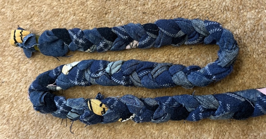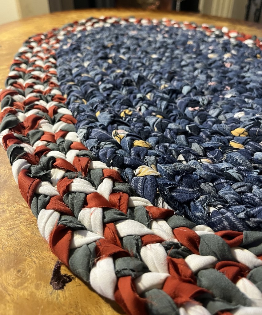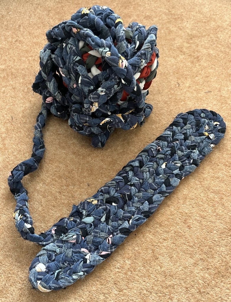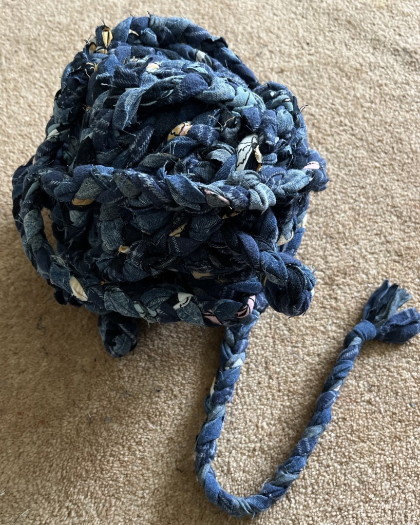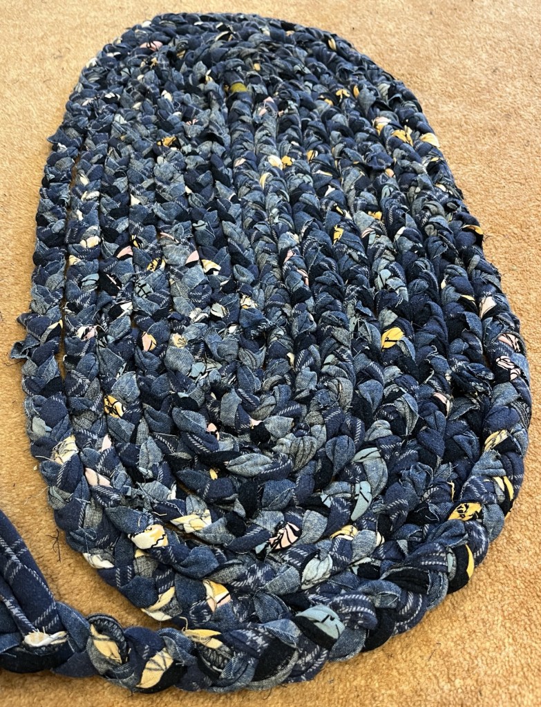 So far I’ve focused a lot on t-shirt material, so I thought it was time to branch out and explore what other materials could be turned into. This is where the braided rug comes in.