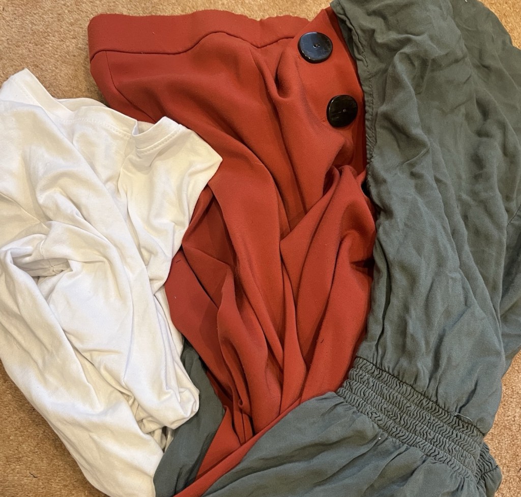 After telling a few friends I’m exploring ways to recycle fabrics and make new, beautiful things from them, I have received a lovely variety of clothing! Everyone seems very enthused about the idea of finding new uses for things that aren’t good enough to donate.