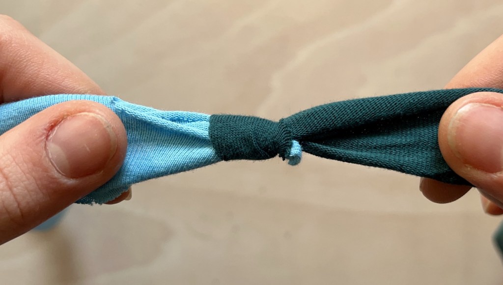 6. Pull both fabric strips to make a tight slip knot.