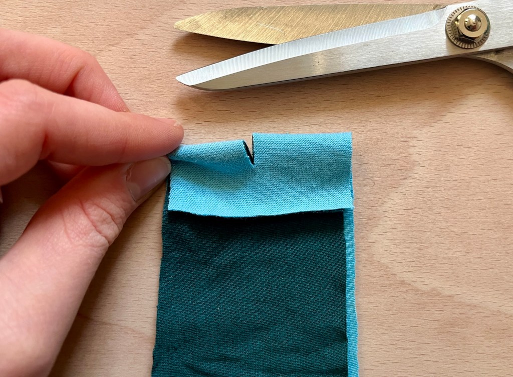 2. Fold the ends over by approximately 2cm and cut a small slit in the fold line through both layers.