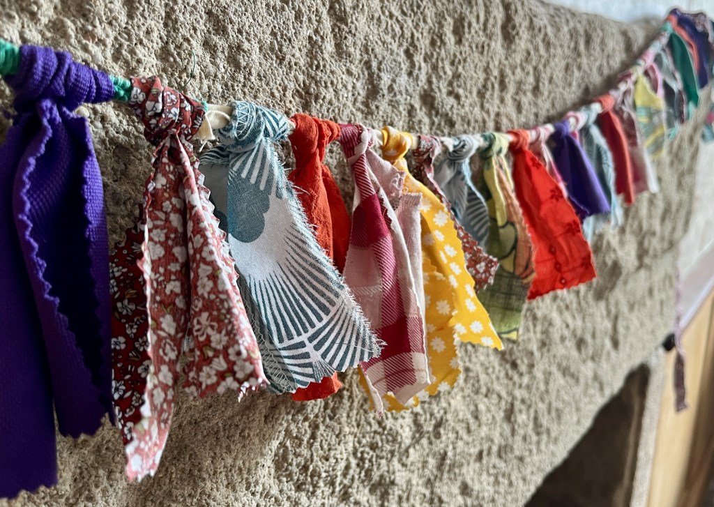 And just like that you have a beautiful, vibrant garland made using scrap fabric!